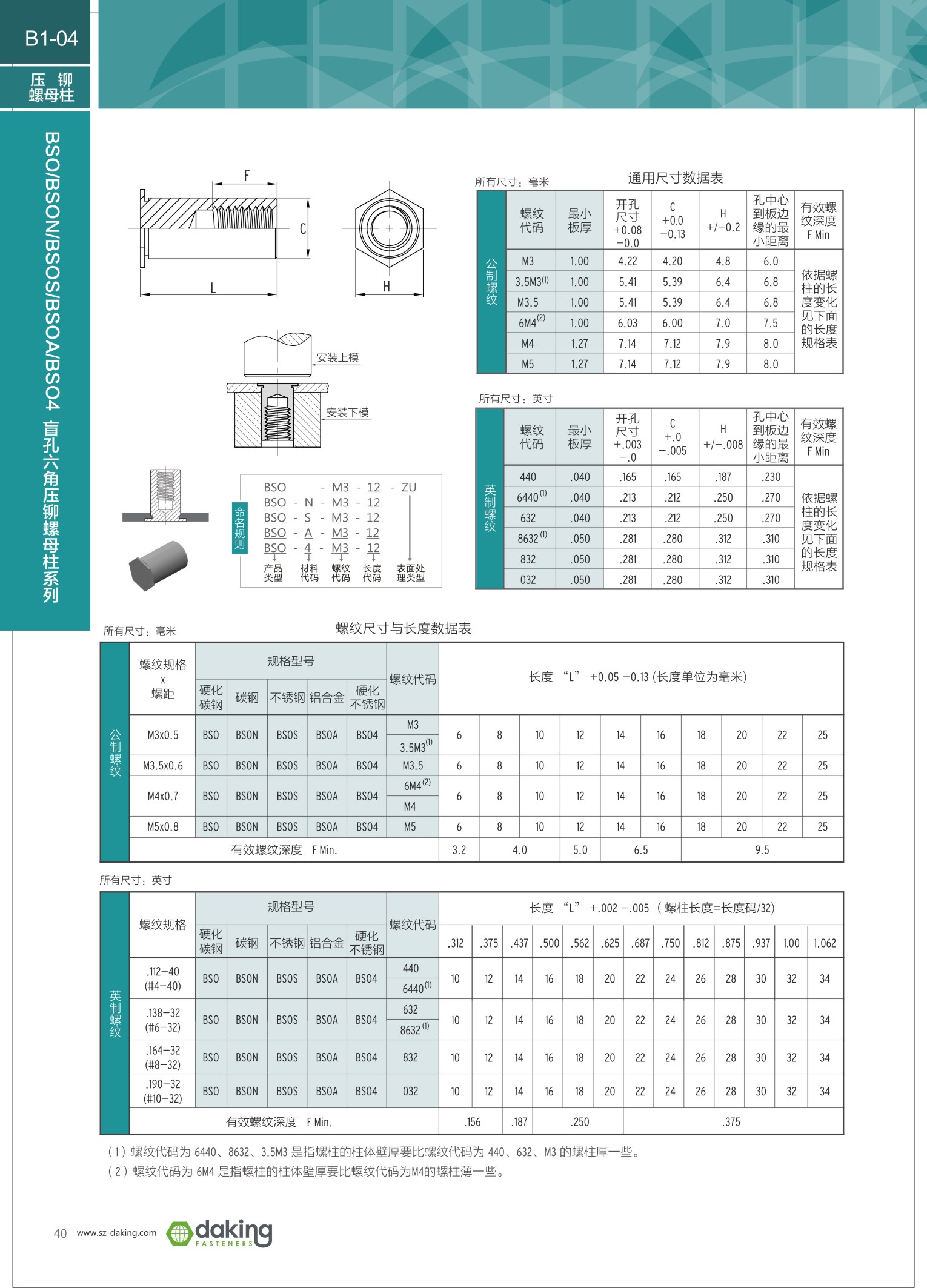 產(chǎn)品概述 盲孔六角壓鉚螺母柱,為板和組件的間隔提供支撐方案。同時(shí)底部保持和安裝板的齊平、封閉,提供光滑完整的外觀效果。