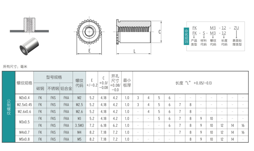 產(chǎn)品概述 通孔圓形花齒壓鉚螺母柱,花齒設(shè)計,系列齊全。對于壓鉚后底板的變形小,允許安裝到非常接近薄板的邊緣。適合空間狹小的場合使用。