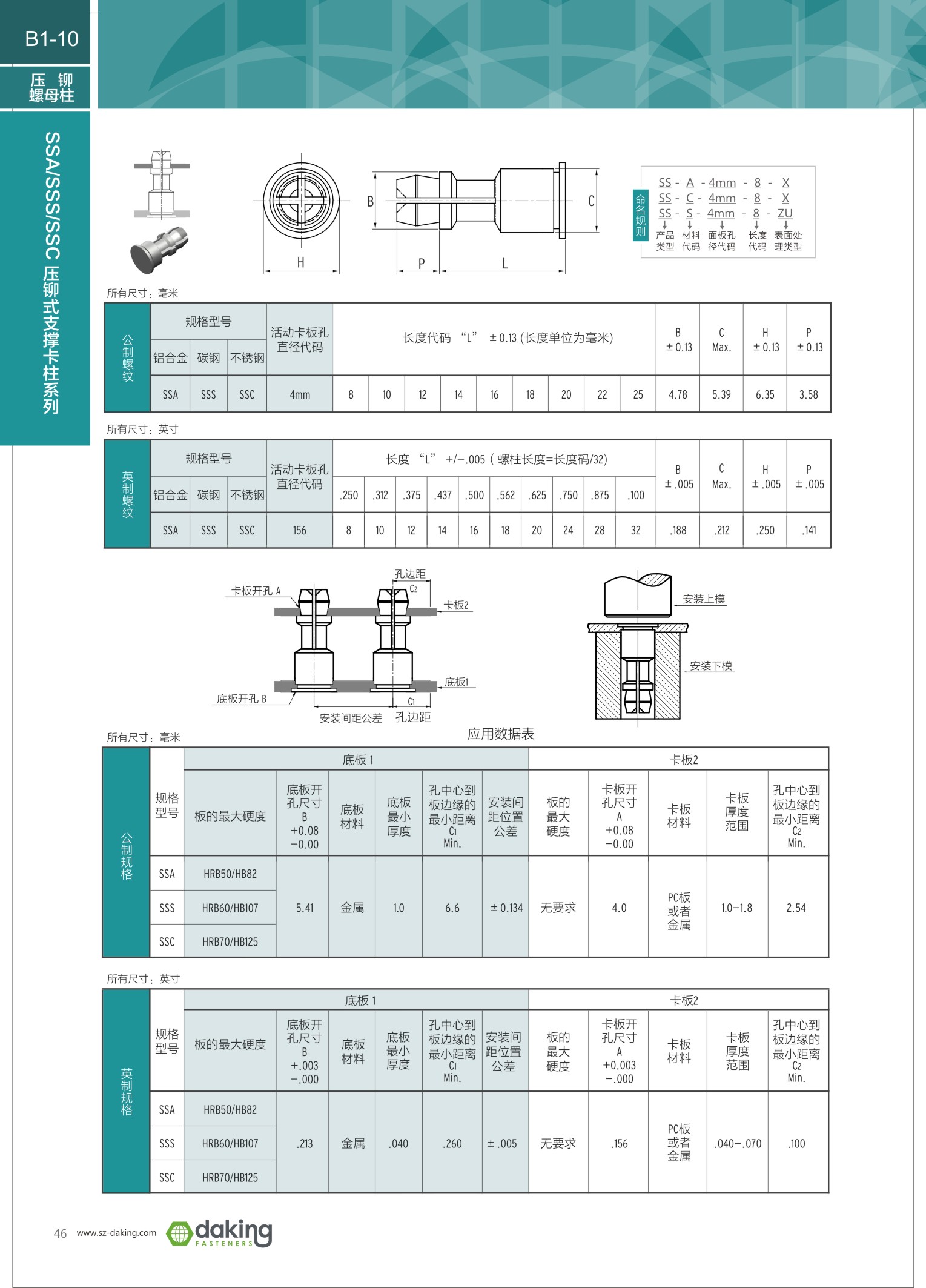 產(chǎn)品使用要求 支撐卡柱的安裝和其他壓鉚緊固件一樣,使用壓力機安裝,不可使用沖壓的方式安裝。