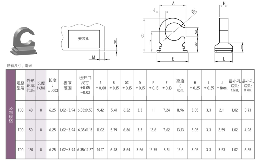 產(chǎn)品概述 線纜固定扣系列,可以快速壓鉚式安裝,和底板齊平,不影響外觀效果。減少EMI/FMI的干擾、避免灰塵、污垢的污染。提供線纜固定用的連接點(diǎn),安裝方便、迅速,不需要使用螺釘固定。不會(huì)隨震動(dòng)以及 溫度、時(shí)間的變化而脫落,避免了粘膠型產(chǎn)品的不穩(wěn)定性。