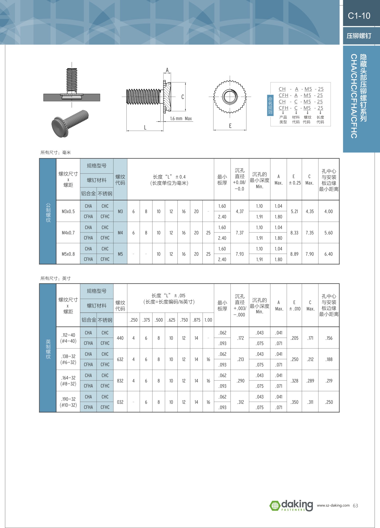 沉頭壓鉚螺釘,可以從板的背面安裝到厚度最小1.6mm的底板上,隱蔽的頭部設(shè)計允許底板的正面保持完整、光滑。以滿足對空氣,液體,灰塵,氣體,或其他潛在的滲透元素的完全密封。