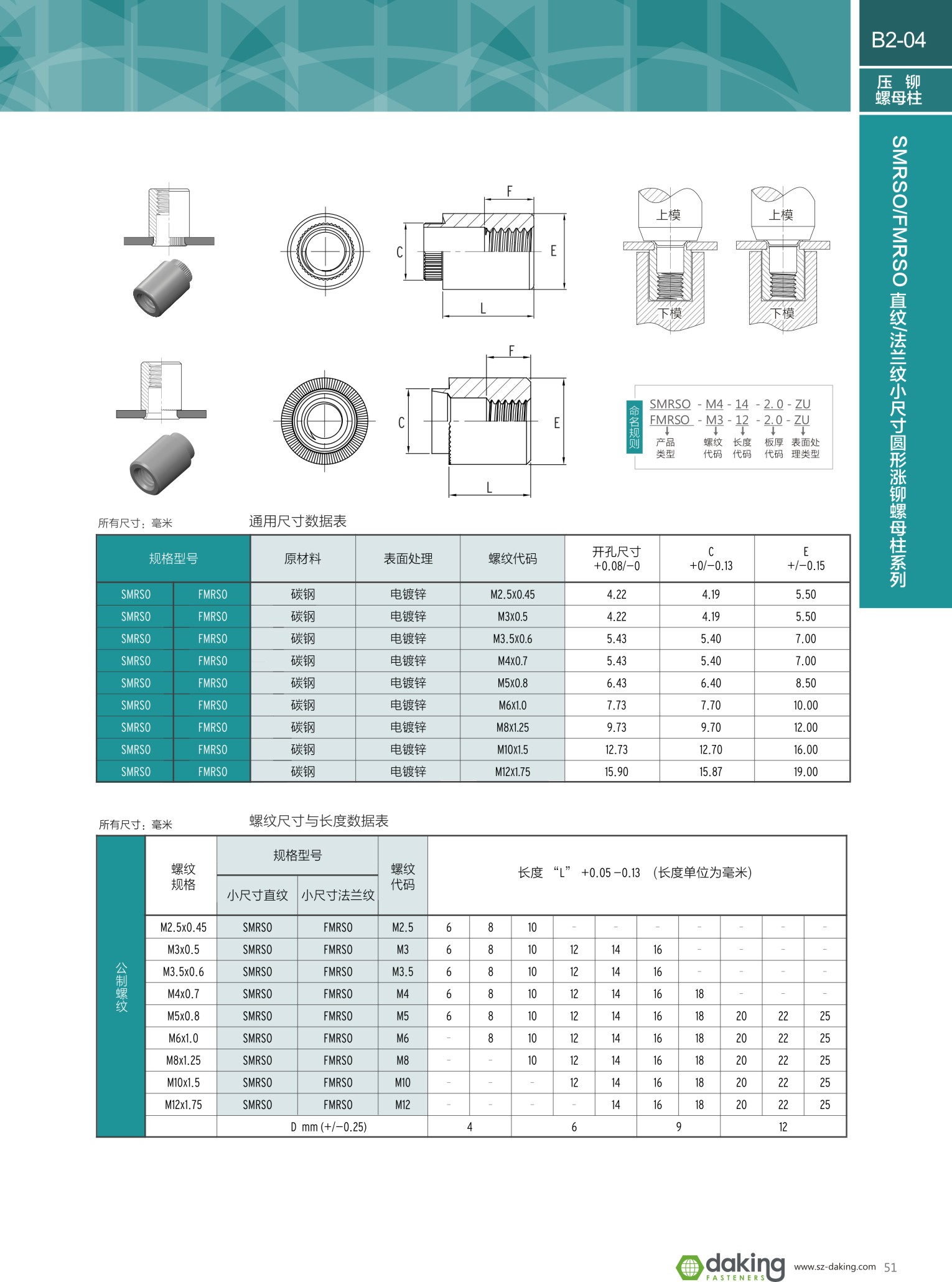FMRSO法蘭小尺寸圓形漲鉚螺母柱,小直接涉及,更加適合狹小空間以及靠近邊緣、角度的部位使用,以便實現(xiàn)高密度安裝。