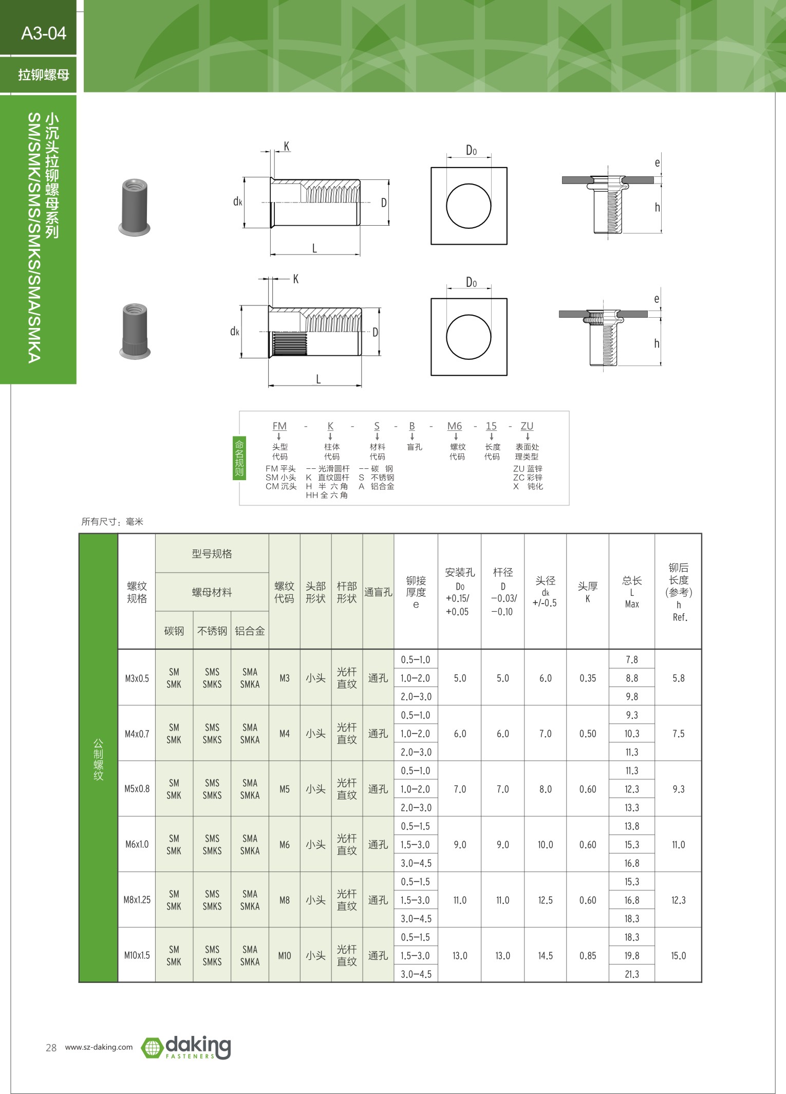 產(chǎn)品概述 小沉頭鉚螺母可以使兩部件之間的間隙降為零或者最小。不需要特殊的沉頭孔。直紋花提供高的防滑性能