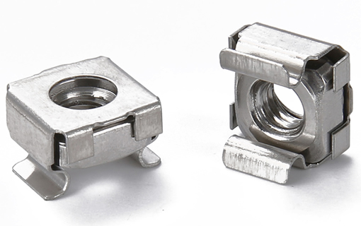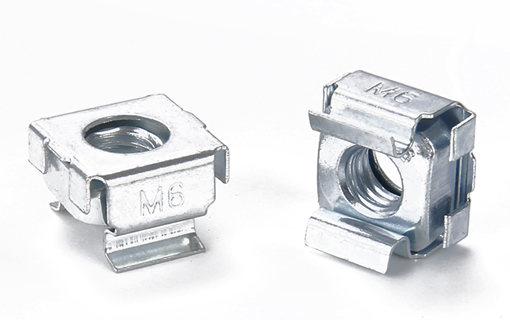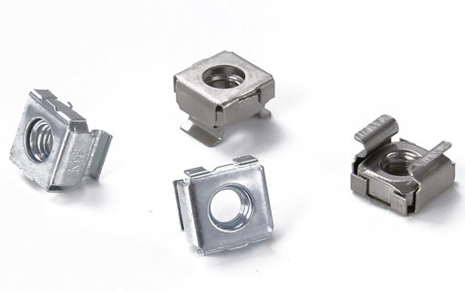 卡式螺母也叫卡簧螺母、籠式螺母。是由卡槽和里面的一個四方螺母構(gòu)成的組合螺母,螺母在外殼里面可以浮動。用專用工具將其放入預(yù)先穿好的方形孔中,抽回工具,利用兩側(cè)卡位固定在板上,螺母就固定在金屬板材上。安裝迅速、便捷,可拆卸。具有浮動范圍,可以調(diào)整裝配螺釘?shù)陌惭b公差。配合皇冠螺釘使用,對機(jī)柜面板起到固定以及美化的作用。
