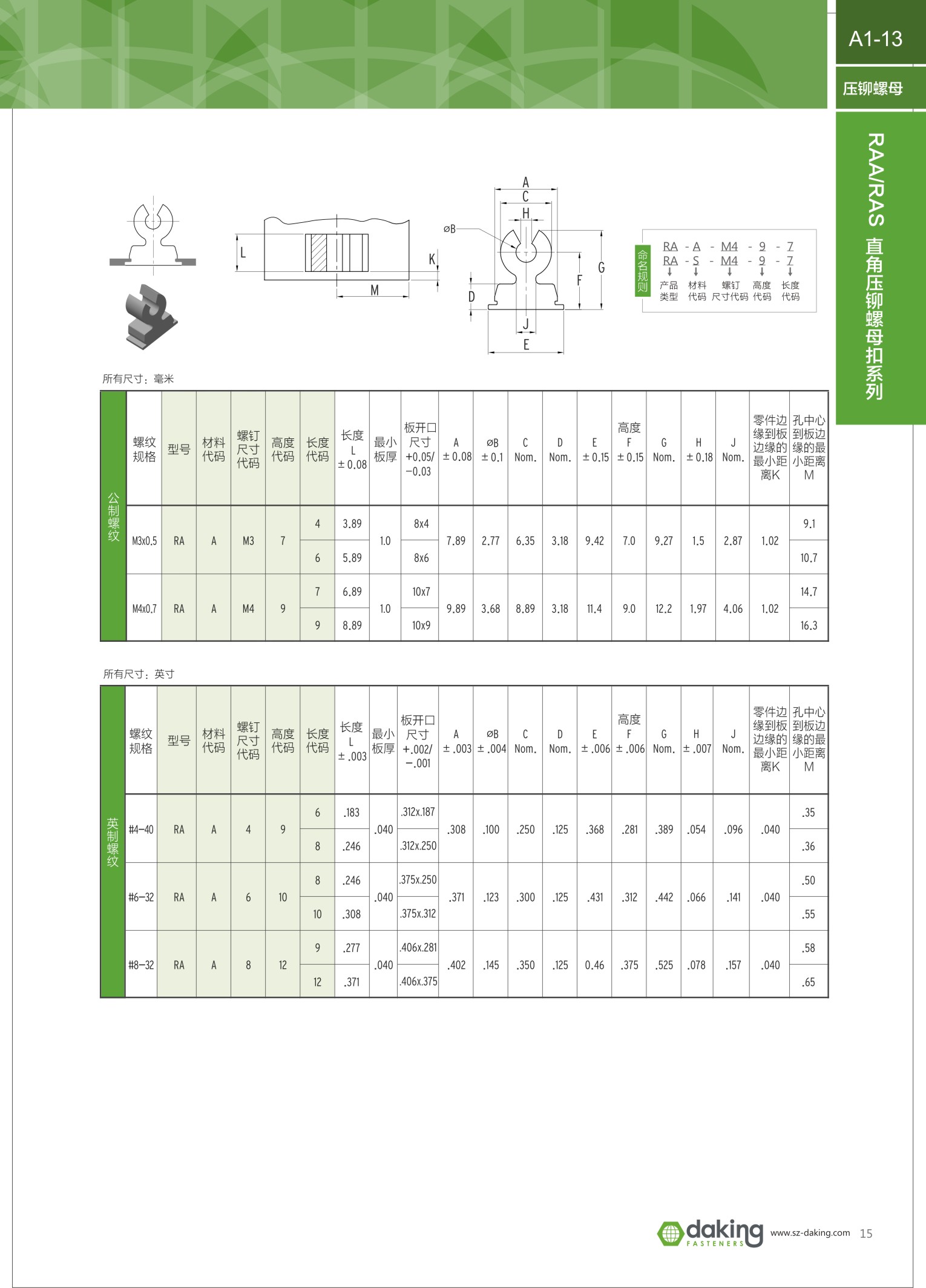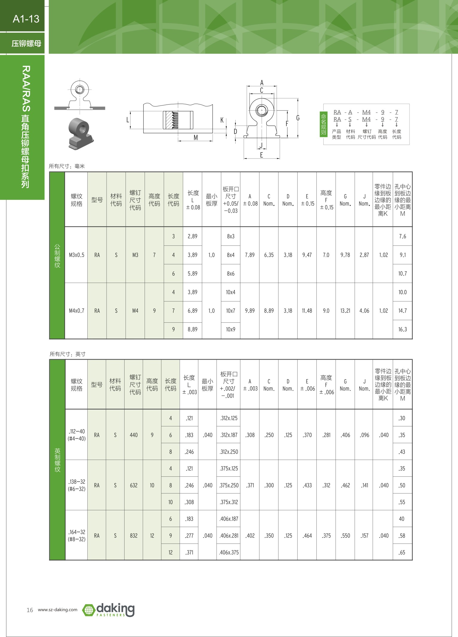 產(chǎn)品概述 RAA/RAS 直角壓鉚螺母扣,提供牢固的直角螺紋連接