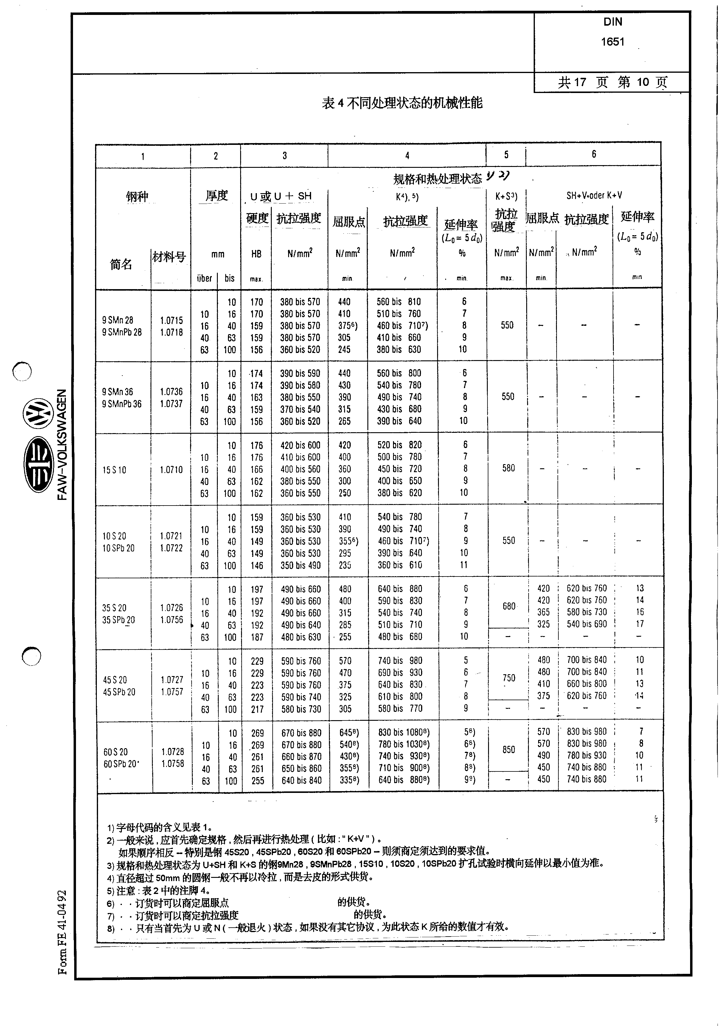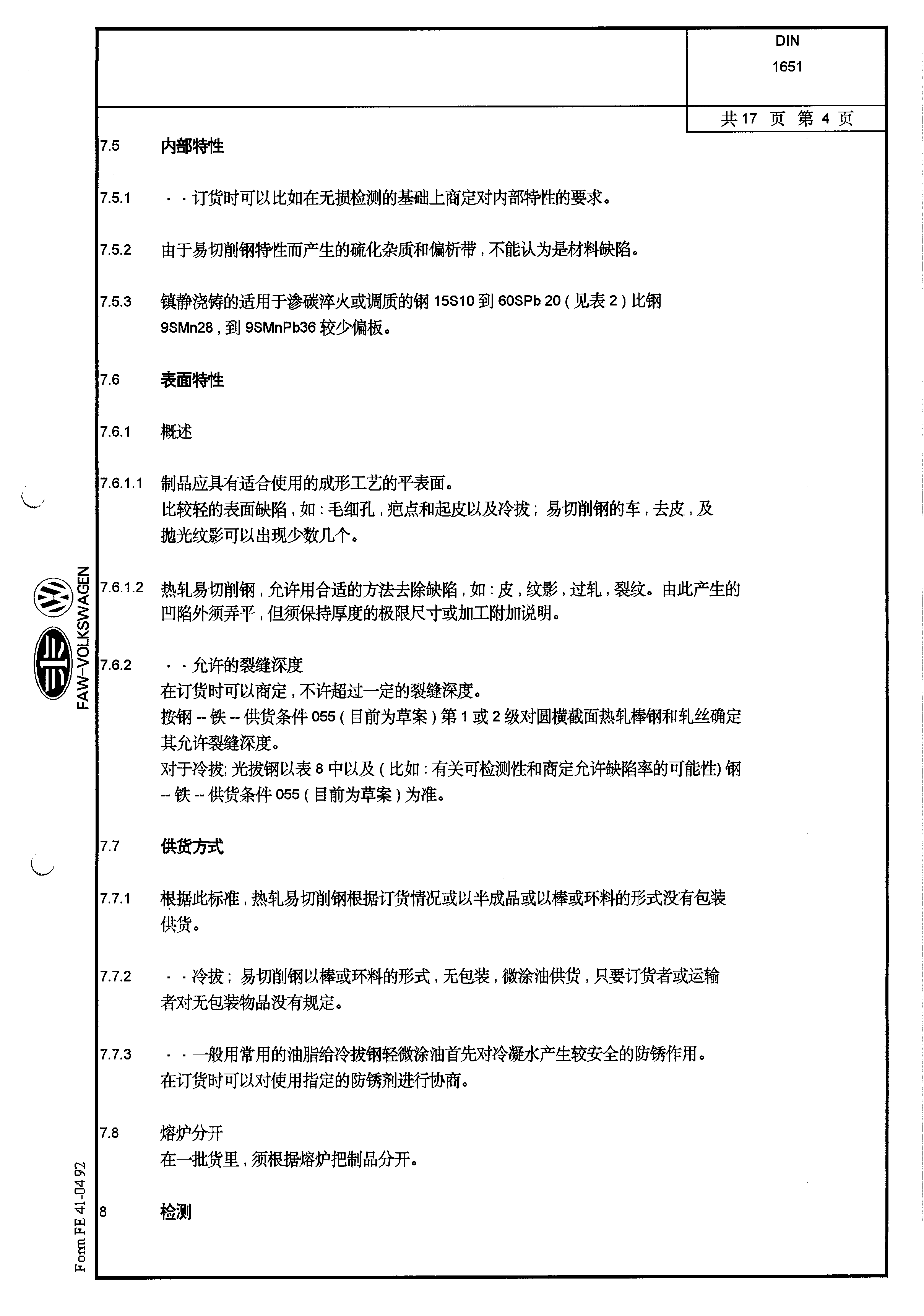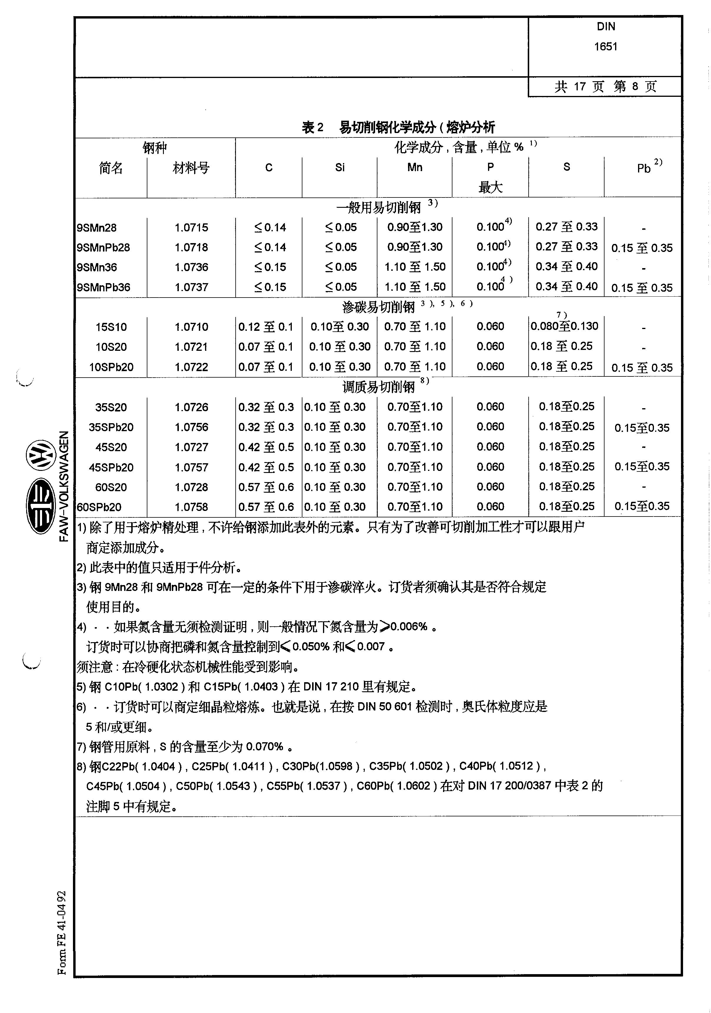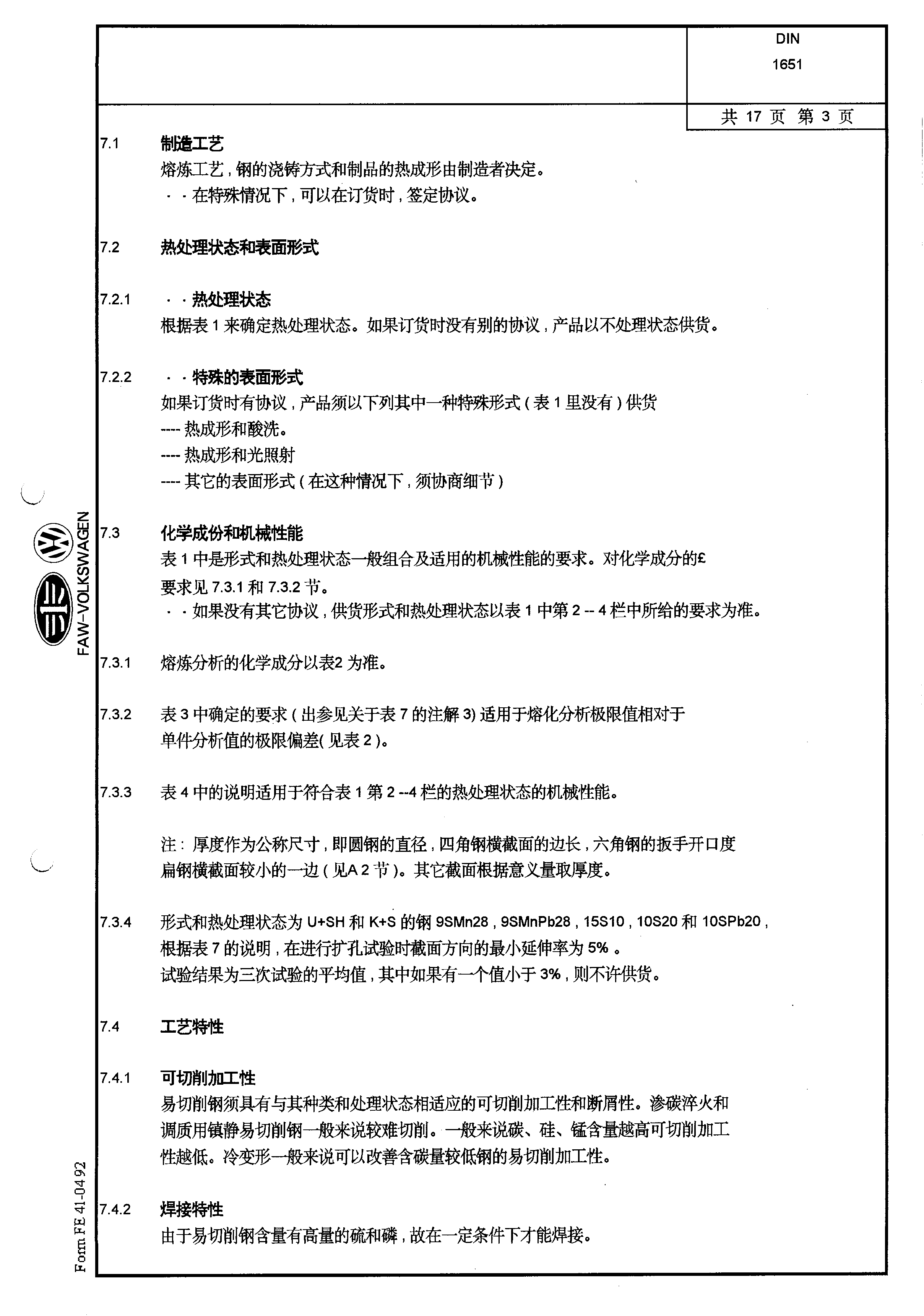 DIN-1651-易切削鋼供貨條件