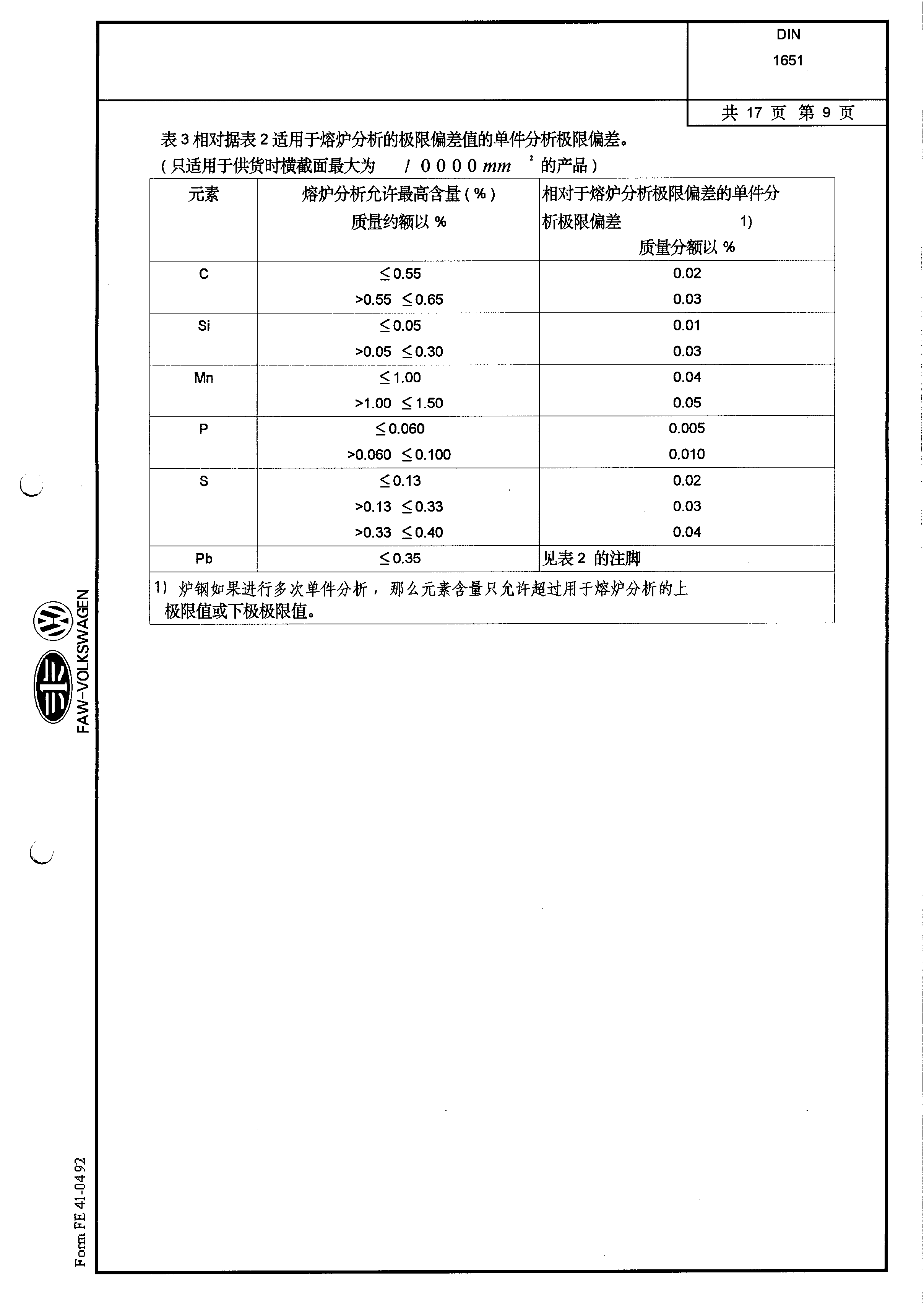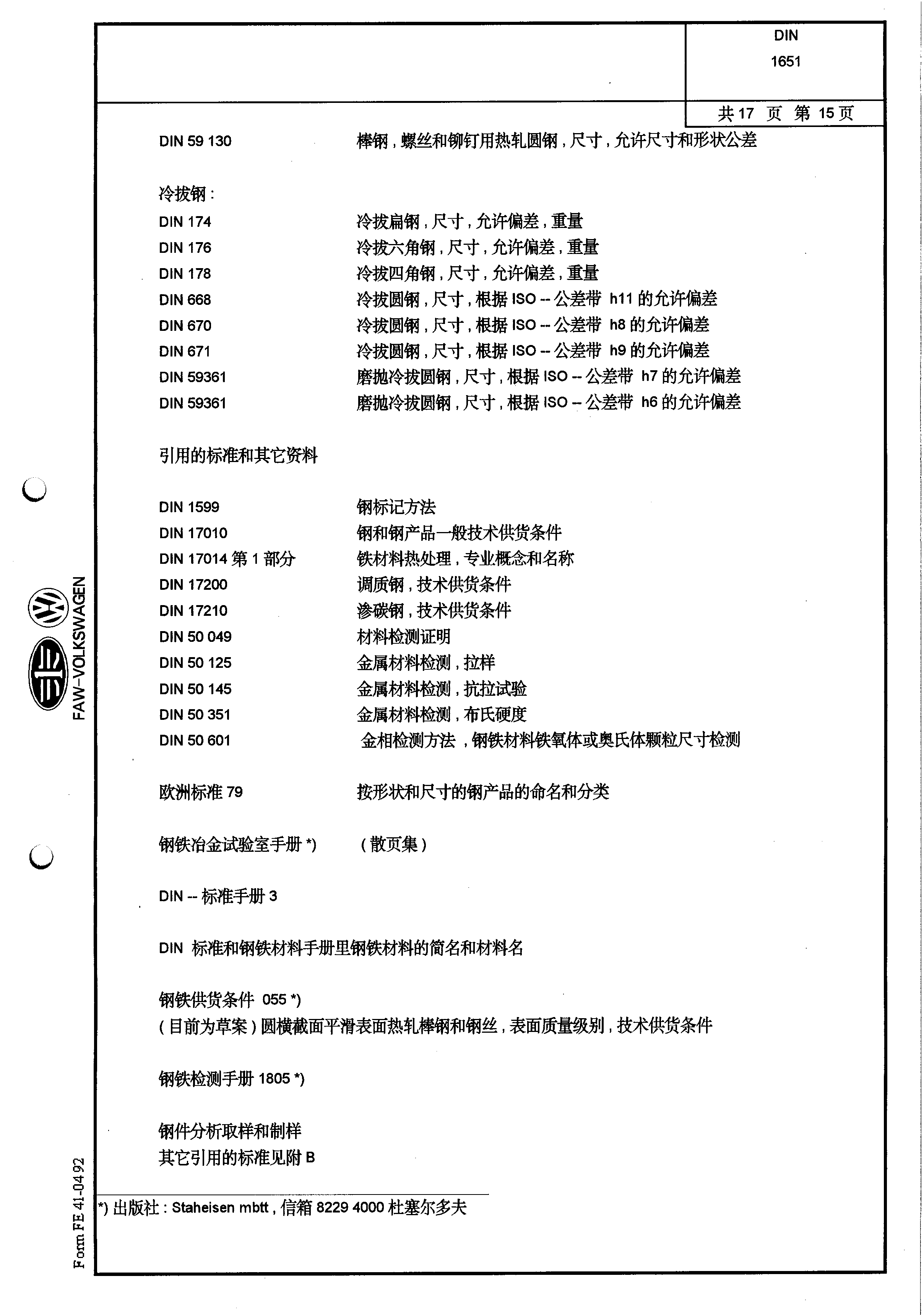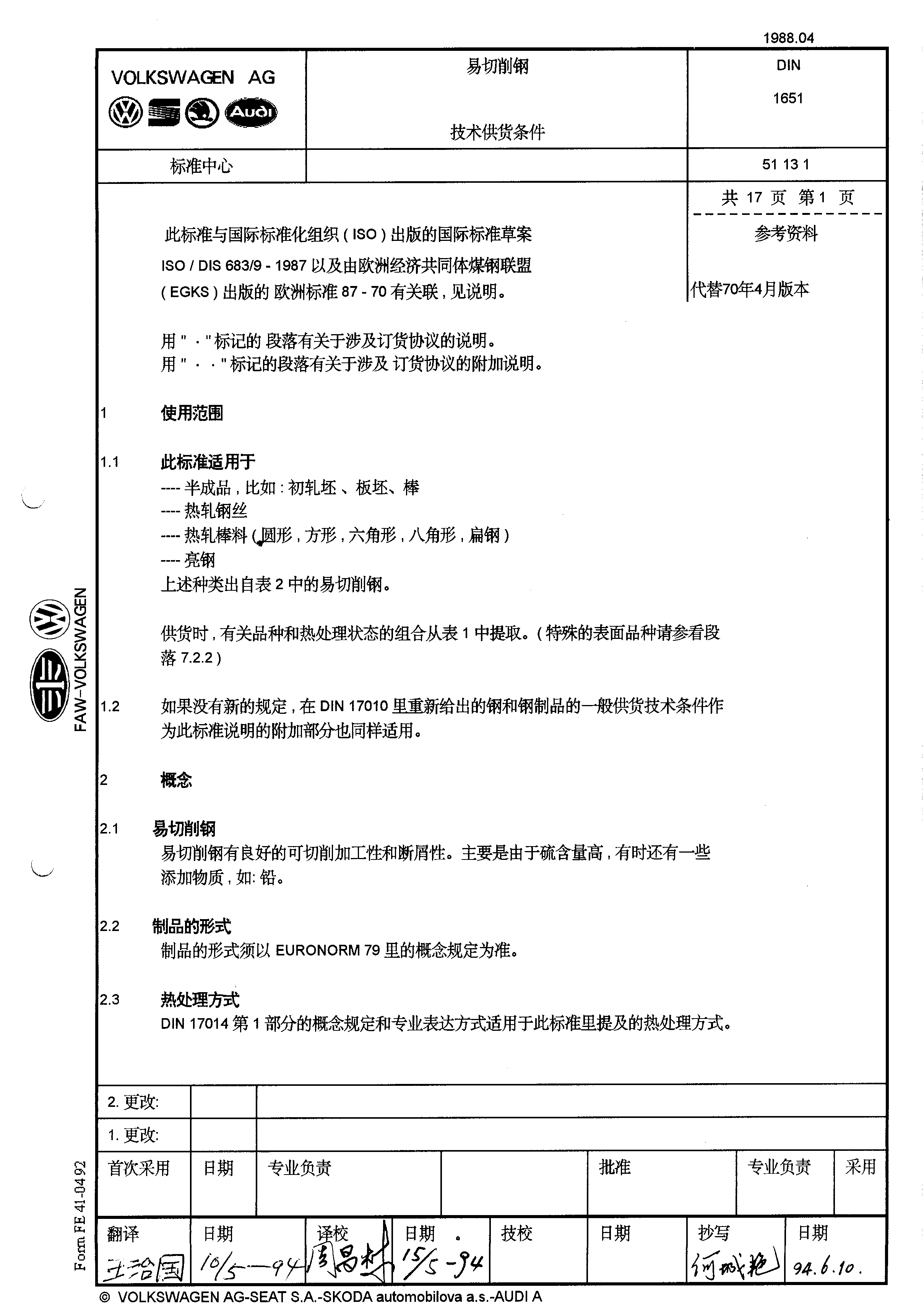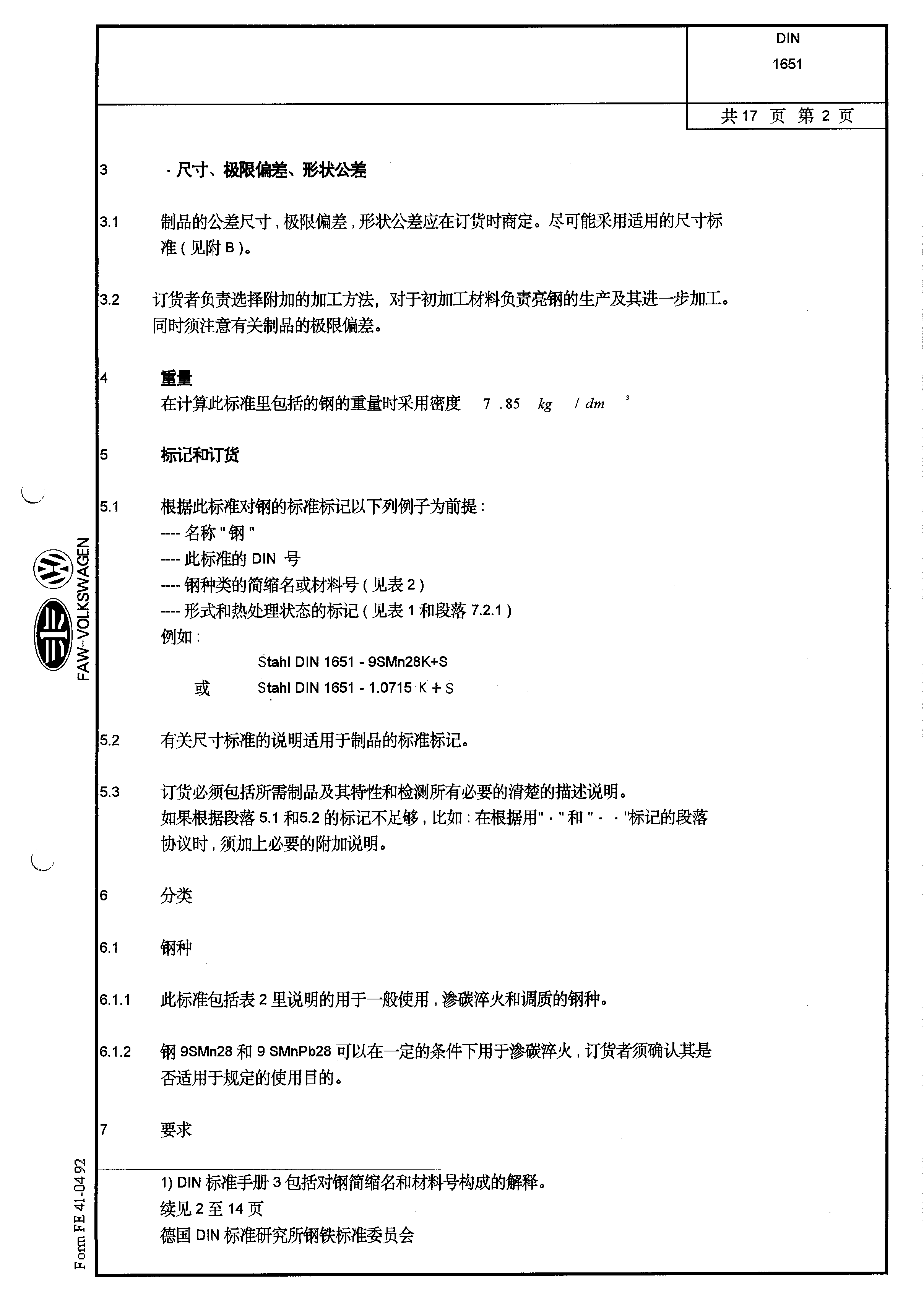 DIN-1651-易切削鋼供貨條件